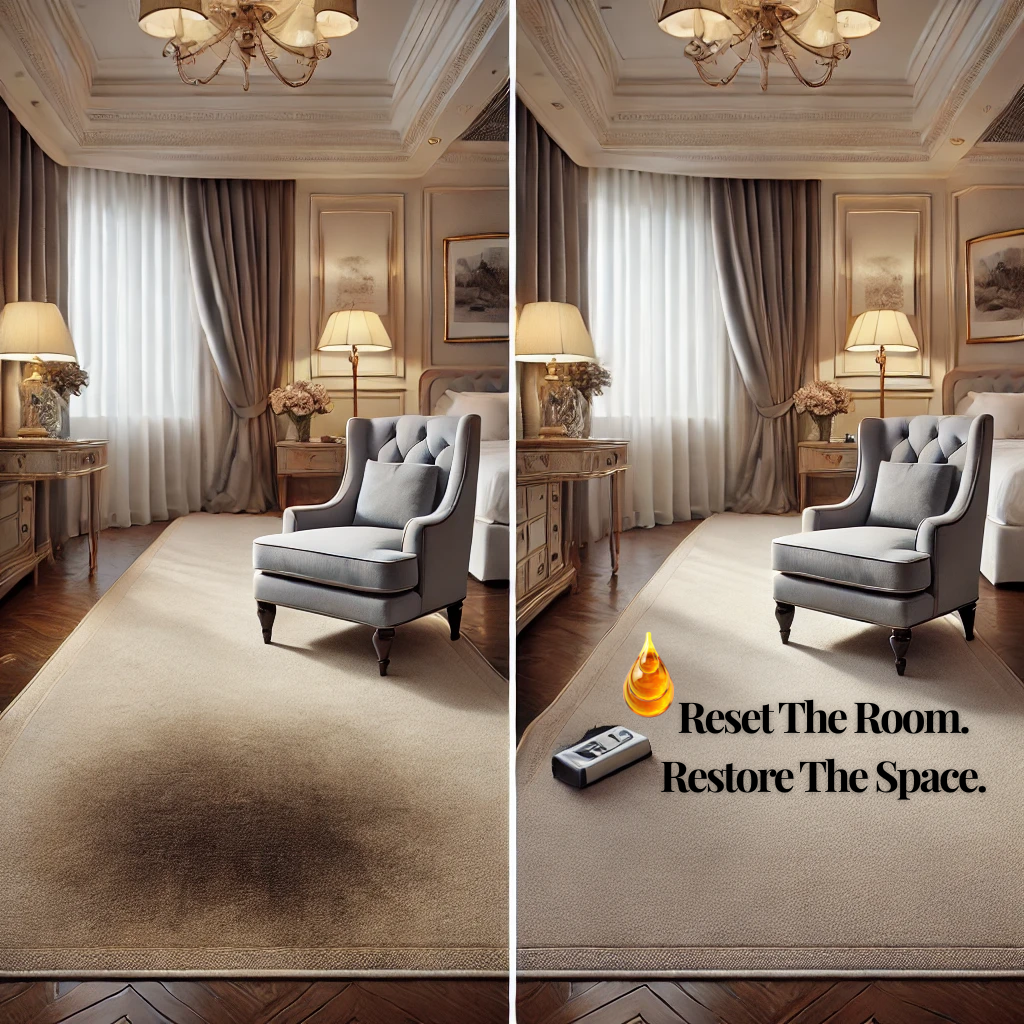 We Don’t Clean — We Calibrate. Every space we touch is restored with intention, precision, & hospitality-level care. From carpets to upholstery to hard surfaces, our work removes what standard cleaning leaves behind: buildup, stagnation, odors, residue, & the unseen heaviness that affects how a space feels.